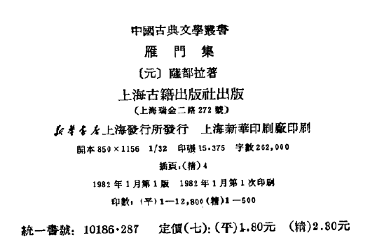 上海古籍出版社在1981年曾出版過薩都剌的《雁門集》,直接寫了薩都拉,這就證明了剌和拉同音。